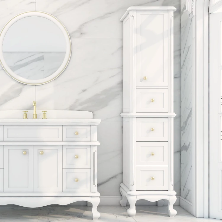 Virta bathroom vanities collections consisting of solid wood bathroom vanities, matching linen towers and vanity mirrors are available in an assortment of sizes and styles.